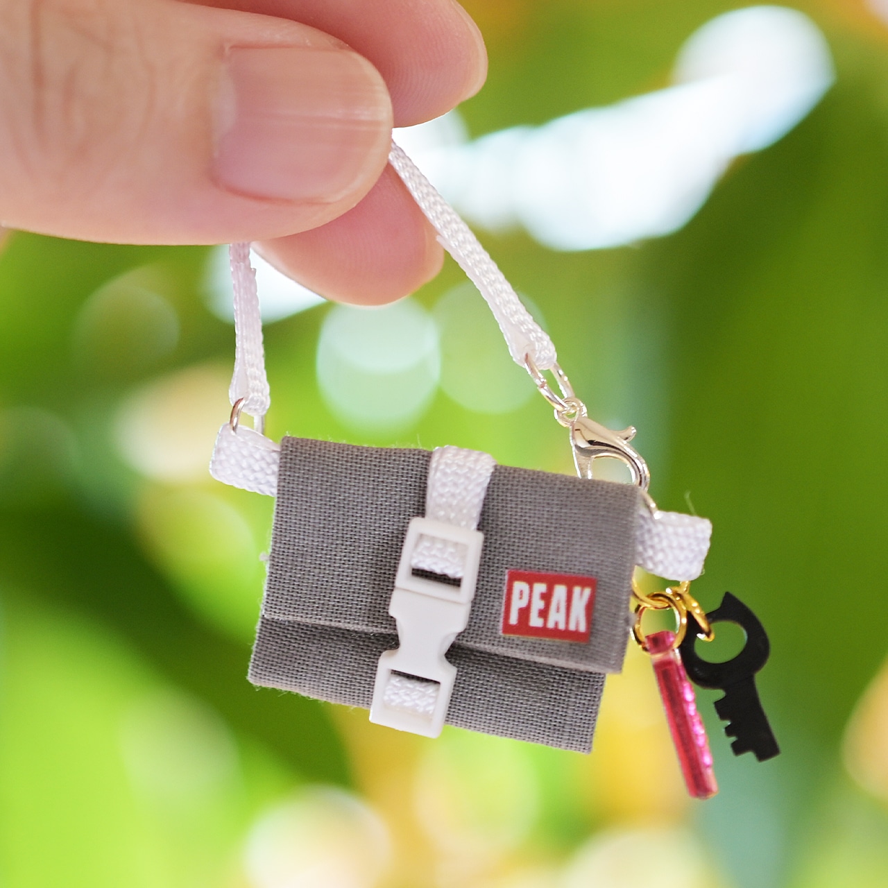 【グレー×シロ紐】バックルバッグ【チャーム付き】