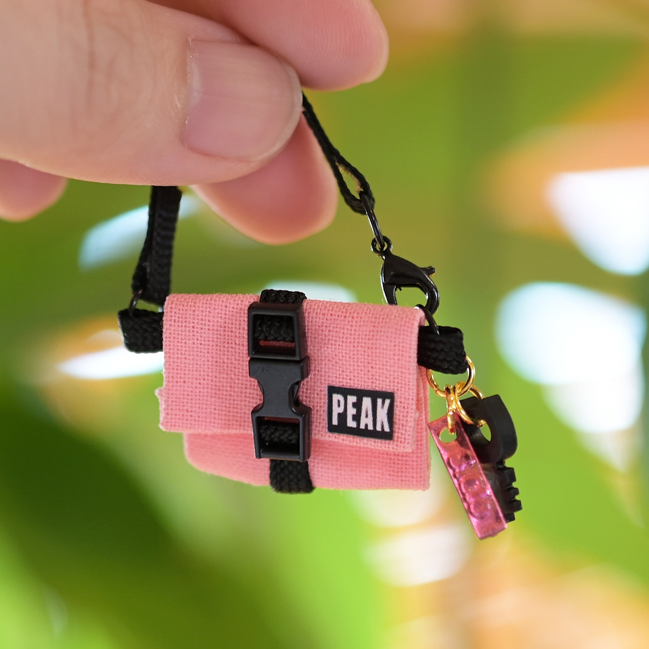 【ピンク×クロ紐】バックルバッグ【チャーム付き】