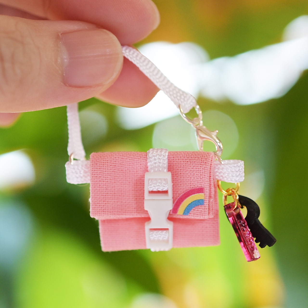 【ピンク×シロ紐】バックルバッグ【チャーム付き】