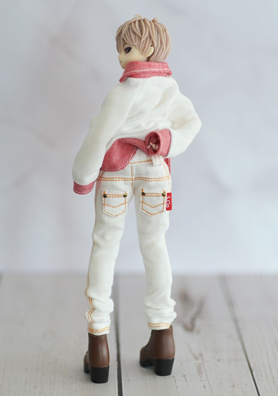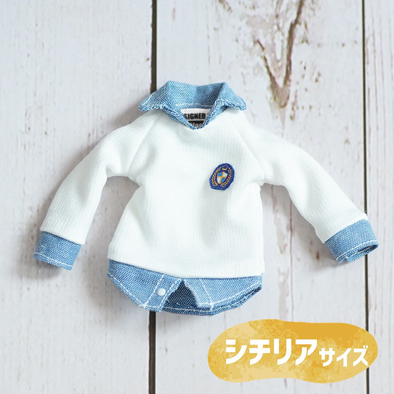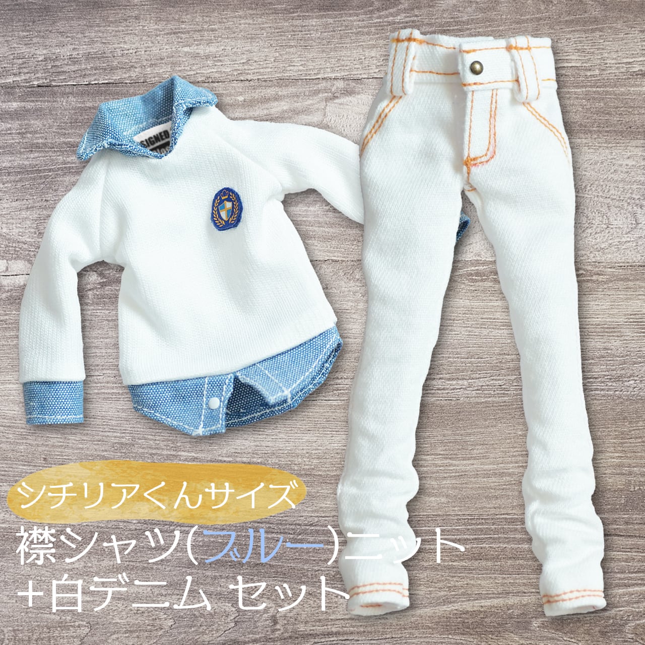 【シチリアくんサイズ】襟シャツ(ブルー)ニット+白デニムセット【1/8ボディ専用】