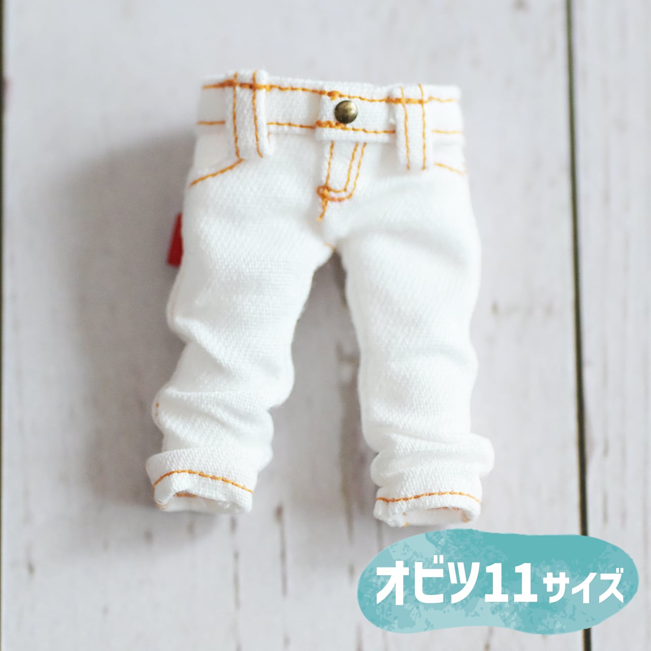 オビツ11ボディサイズで作った襟シャツ+ニットと白デニムのセットです。