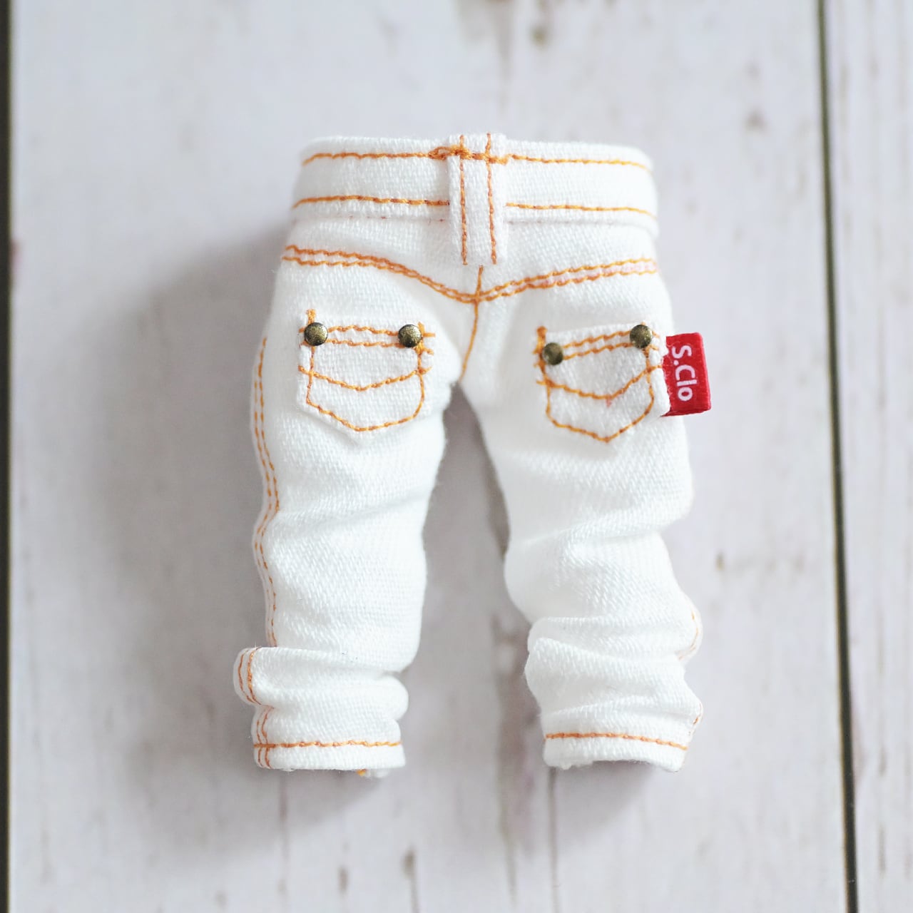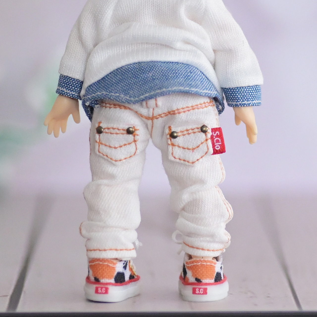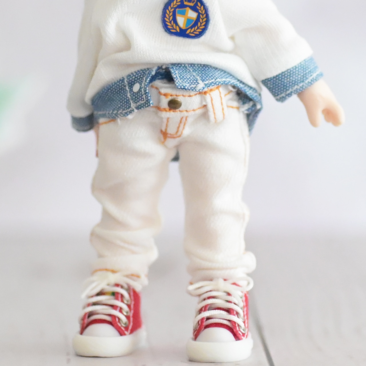 オビツ11ボディサイズで作った白デニムです。
